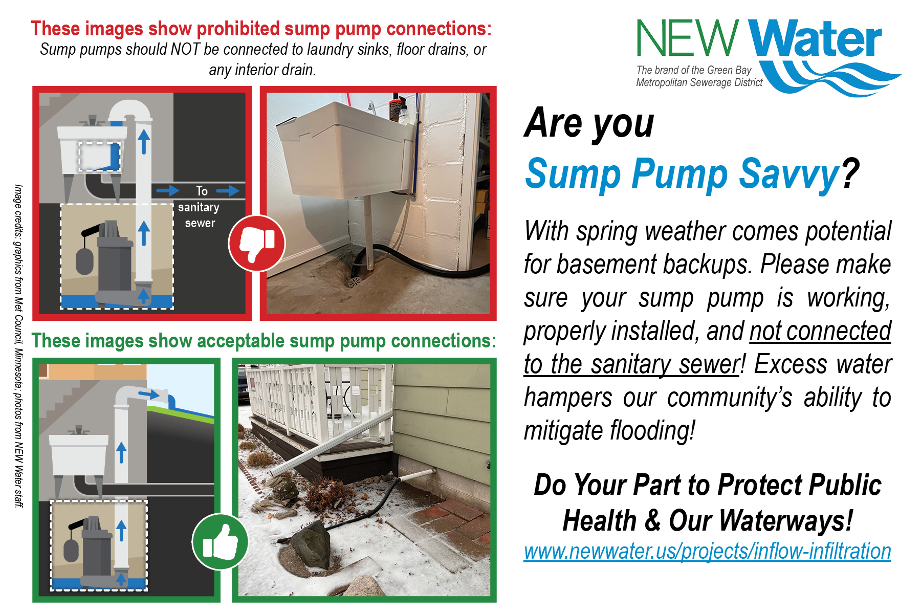 Attention homeowners: With the snow melting and warmer temperatures, Scott Municipal Utility would like to remind you that it’s a great time to check that your sump pump is working properly, and not connected to the sanitary sewer.